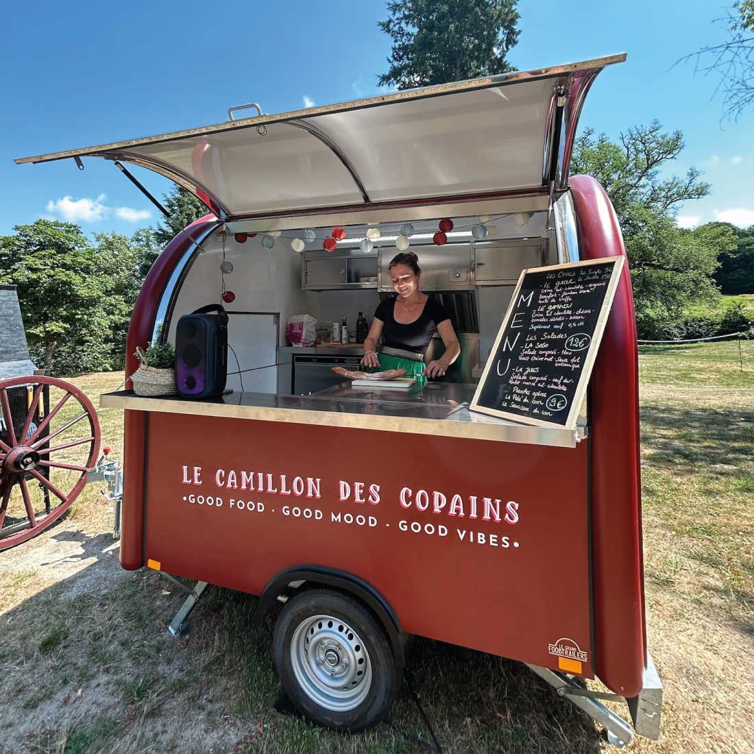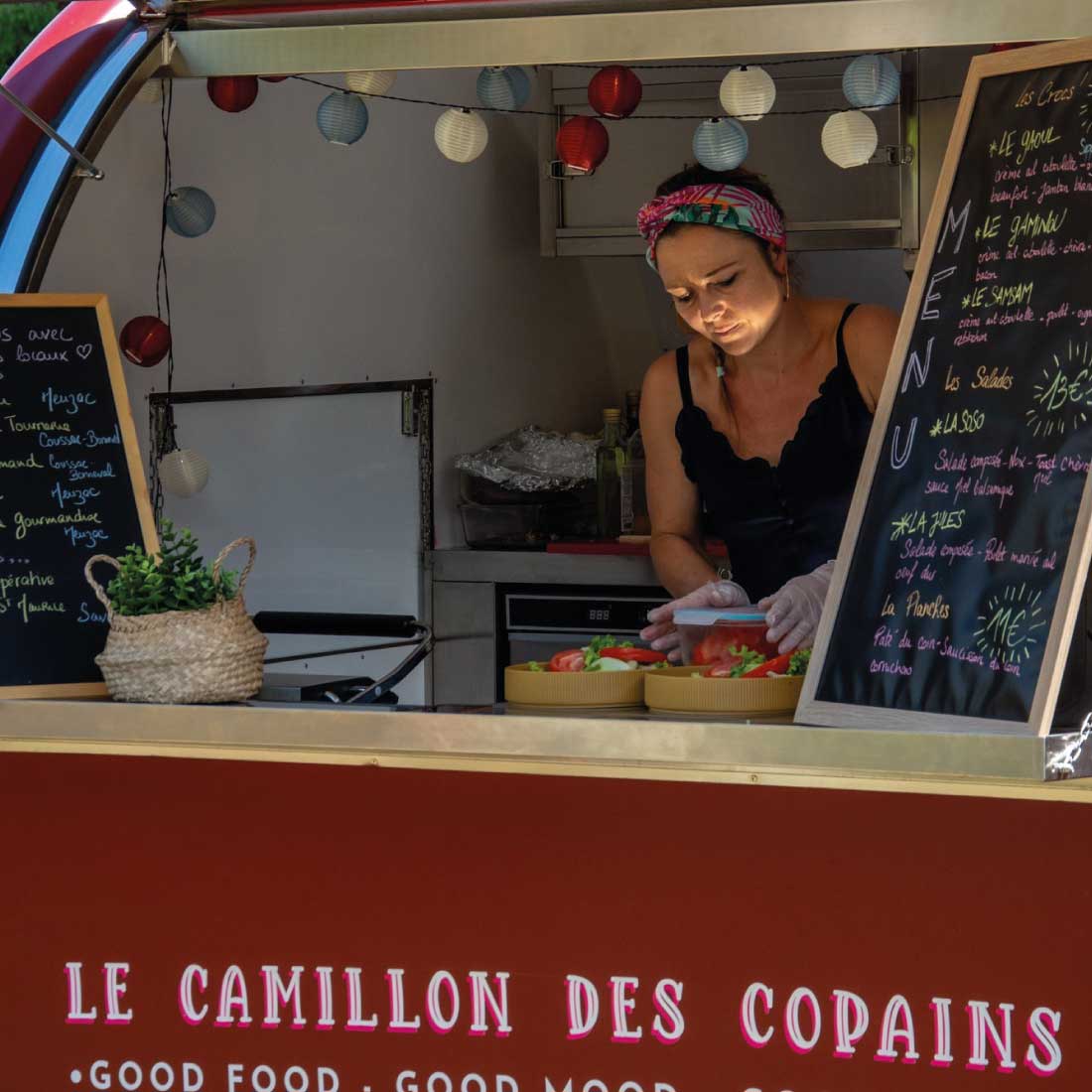 Lancement du food truck de Camille, le Camillon des copains avec création du nom (naming), logo, habillage truck, flyer et page web.